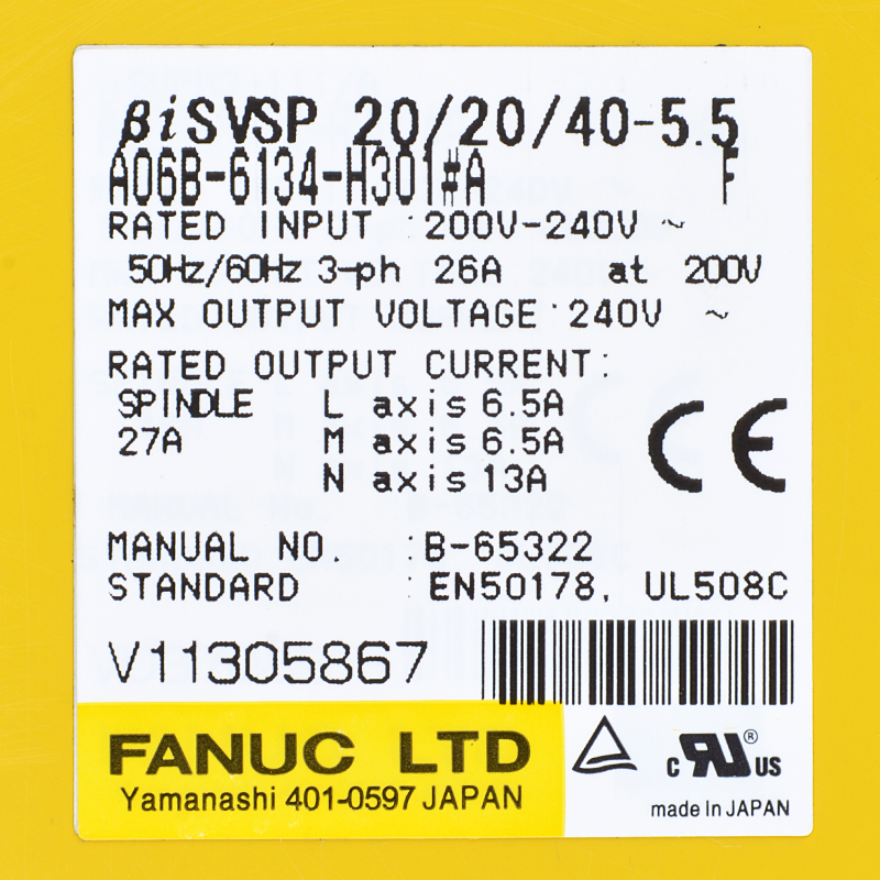 ఫానుక్ డ్రైవ్‌లు A06B - 6134 - H301#A Fanuc Bisvsp 20/20/40 - 5.5