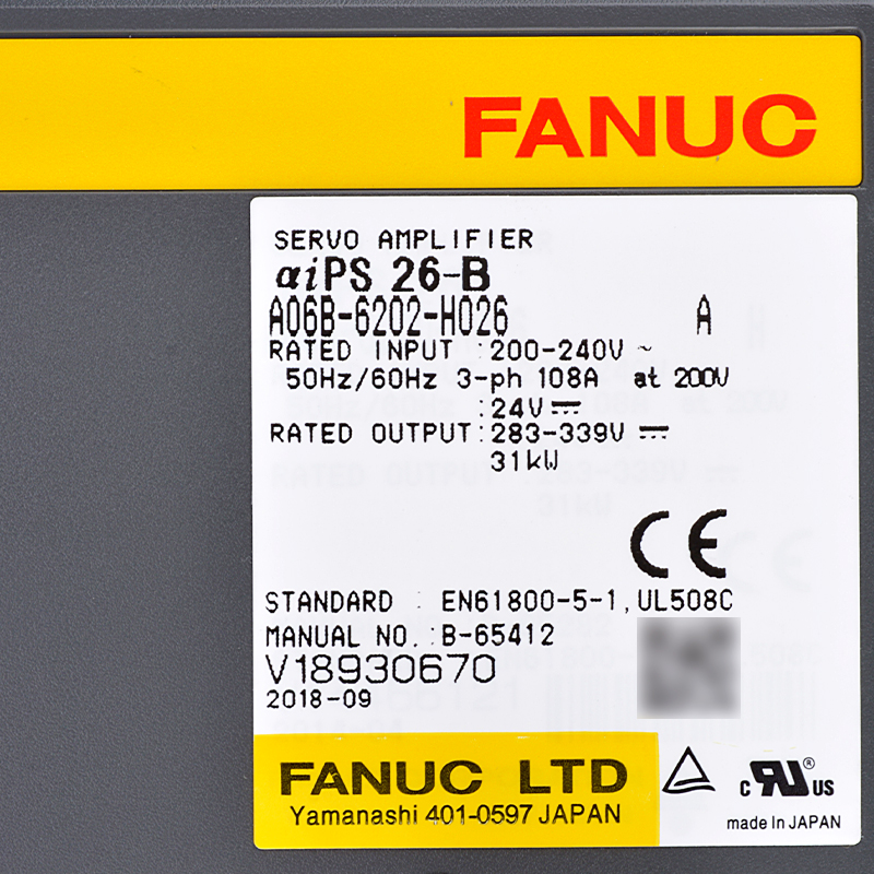 ఫానుక్ డ్రైవ్‌లు A06B - 6141 - H030#H580 FANUC SERVO యాంప్లిఫైయర్ AIPS 26 - B విద్యుత్ సరఫరా