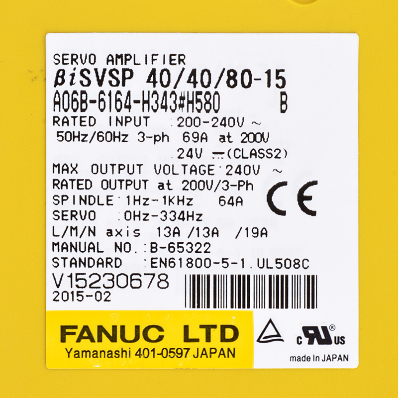ఫానుక్ డ్రైవ్‌లు A06B - 6164 - H343#H580 FANUC BISVSP 40/40/80 - 15